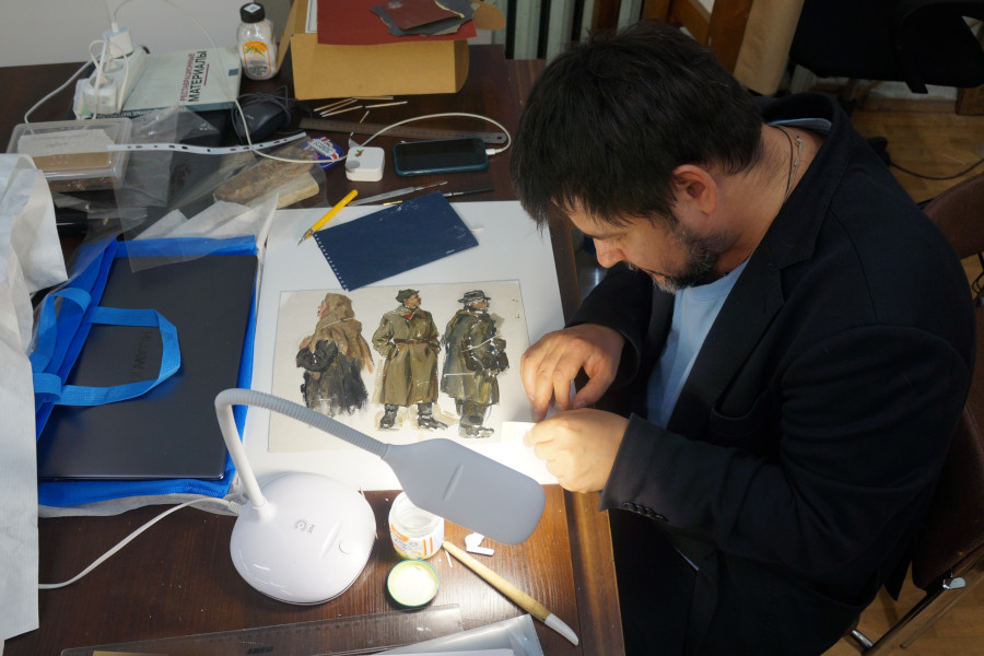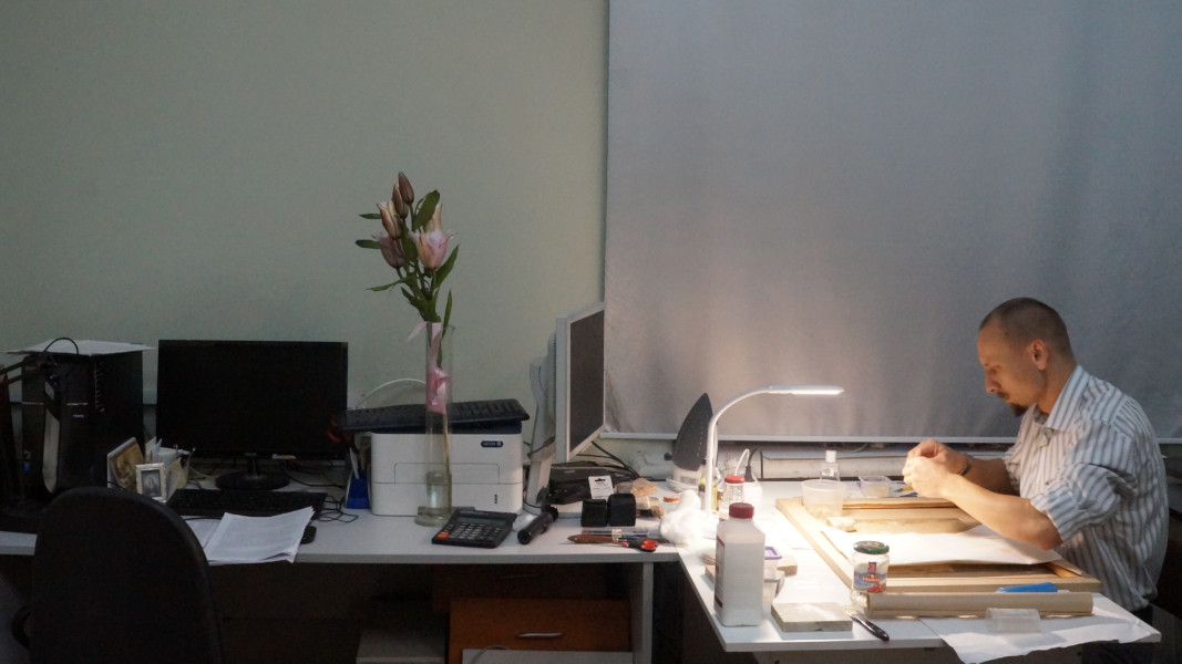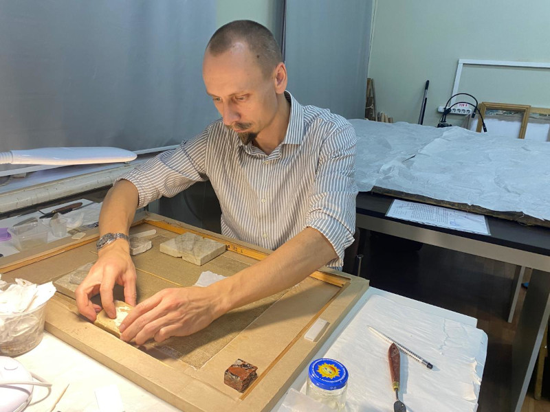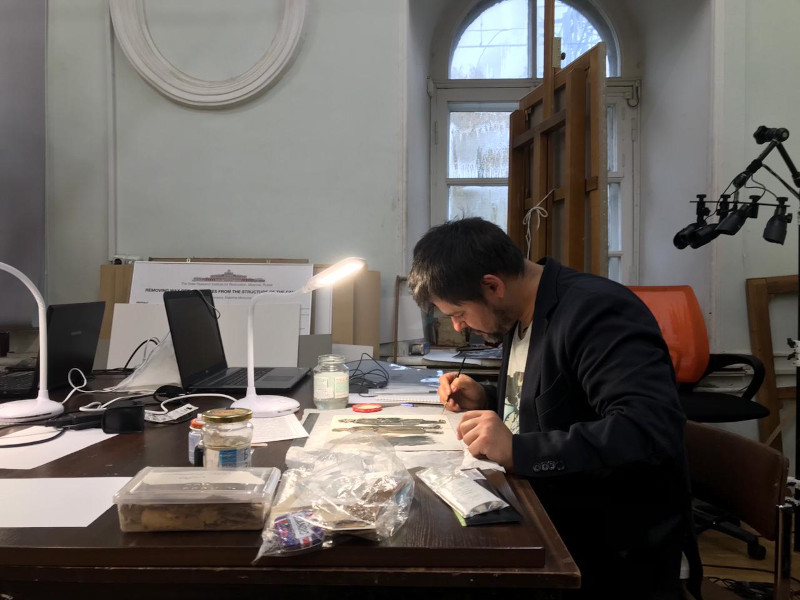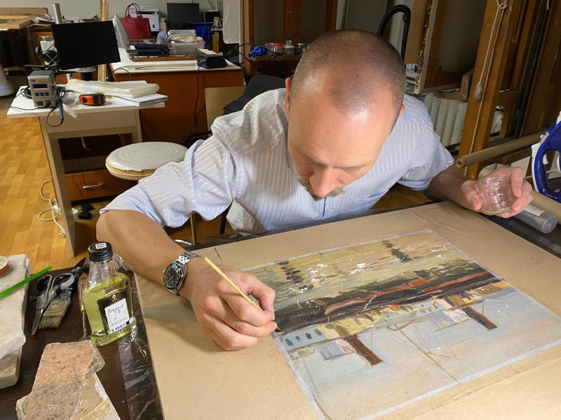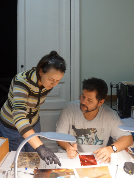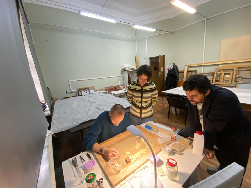 Под руководством художника-реставратора первой категории Марины Михайловны Ворониной А. Д. Сережко и М.А. Шевченко ознакомились с основами реставрации и консервации произведений станковой масляной живописи на гибких основах, а также освоили на практике различные реставрационные методики и материалы.