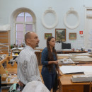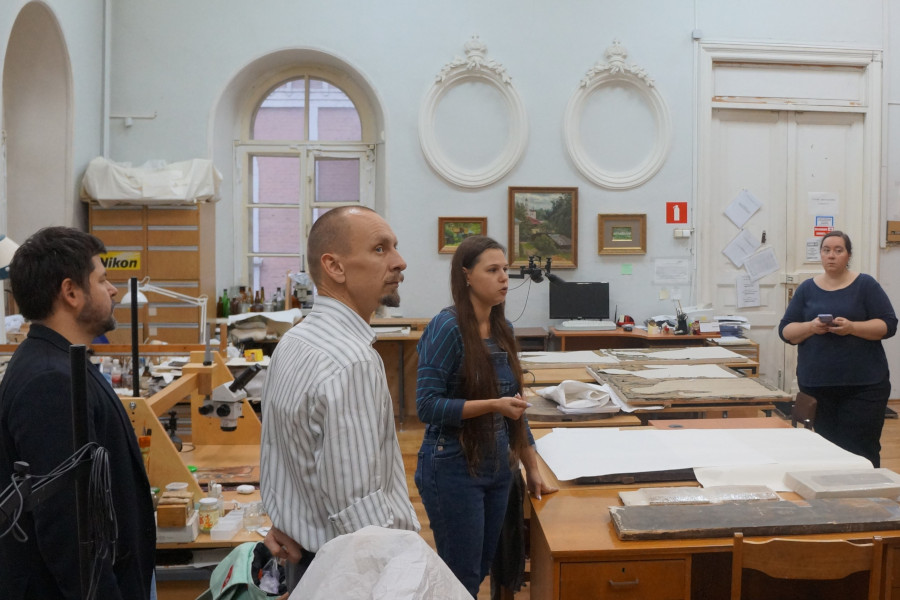 В лаборатории физико-химических исследований ГОСНИИР ведущий научный сотрудник С.А. Писарева познакомила гостей с методами изучения произведений живописи. При посещении отдела научной реставрации станковой темперной живописи научный сотрудник П.Р. Пиунова рассказала о научном подходе в реставрации памятников древнерусской живописи.